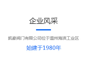 凱豪閥門(mén)有限公司位于溫州海濱工業(yè)區(qū),企業(yè)占地面積20000平方米。初建于 1985 年,注冊(cè)資金5008萬(wàn);工廠主要生產(chǎn) ANSL、JIS、DIN 和 GB 標(biāo)準(zhǔn)的閘閥、截止閥、止回閥、球閥、蝶閥、